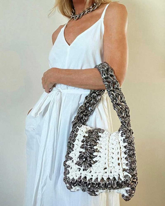 White and Pewter Hand or Shoulder Bag